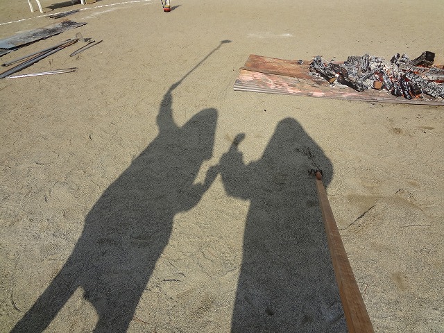 熾火になったところで、前日に、みんなが濡らした新聞紙とアルミホイルで包んで準備してくれたサツマイモを投入!